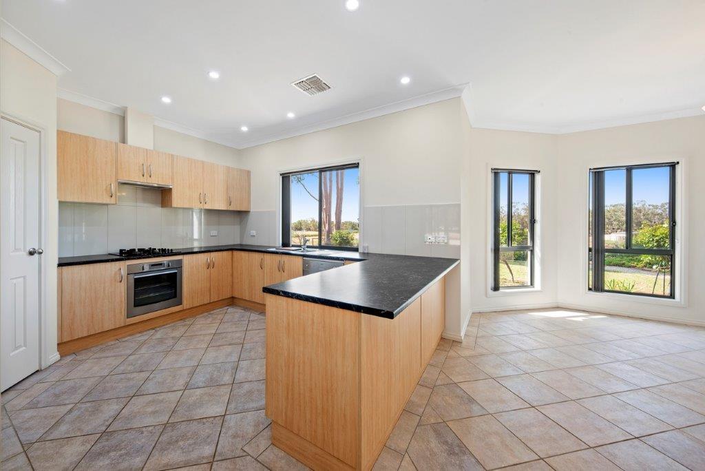 The rear yard is a combination of lawn and native shrubs and fenced from the rest of the property so that both children and pets are secure. Beyond this is a large 16 m x 12 m shed with a with loo, basin, sink and a workshop area and adjoining is a fully covered lockable 6 m x 12 m additional shed area . The back yard extends beyond this shedding a further 45 m. with mostly cleared paddock and would lend itself to a large vege garden, bike track or a small orchard.