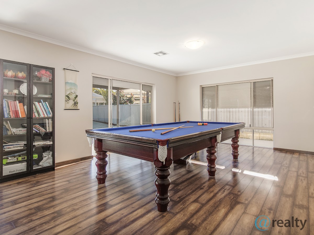 The spacious master bedroom offers peace and tranquillity, away from the hustle and bustle of the living areas. It features a large walk in robe, an additional wall of built in robes providing extra storage space and modern en-suite. Whether it’s time to entertain or enjoy quality family time you will be spoilt for choice, there’s the huge resort style open plan living area including expansive games area, a gourmet kitchen with heaps of stone bench space, stainless steel appliances, inc Bosch dishwasher and more cupboards than you could ever wish for, a separate spacious theatre room with recessed ceiling and a fantastic separate kids/teenage retreat, all of which are decorated in modern neutral tones.