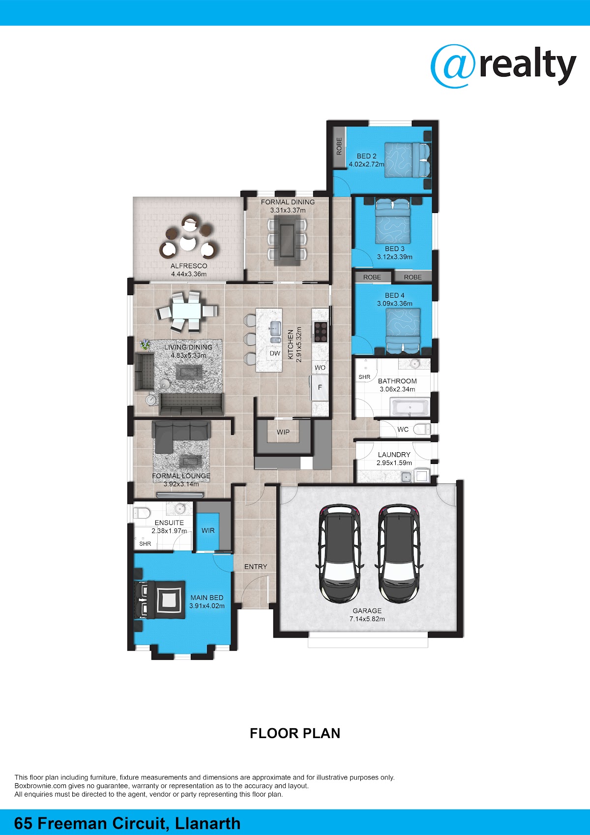 * Four generous bedrooms with robes