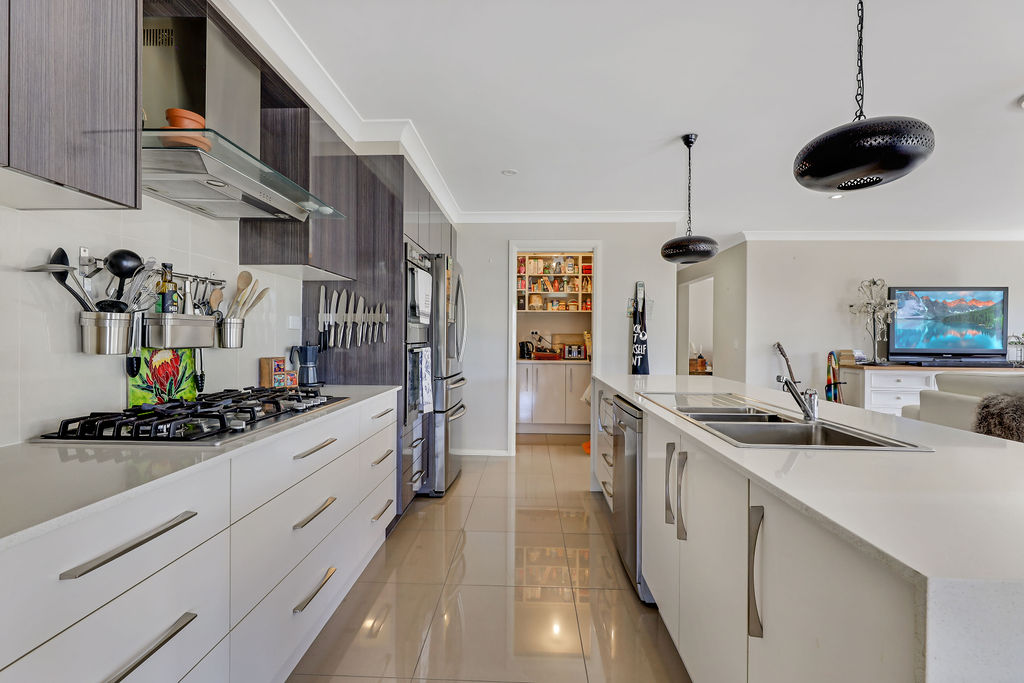 * Deluxe stone kitchen, 900mm gas cooktop, dishwasher, plumbed fridge and butler pantry