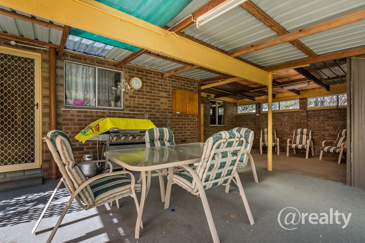A lovely front garden with palm trees, shrubs, and an array of well-kept plants heartily welcomes you and the gravel driveway leads you up to the rendered double brick home, with hardy board on the second level. A shaded front patio, overlooking the bowling club, extends from the carport and front door area.