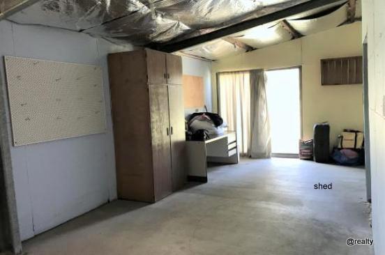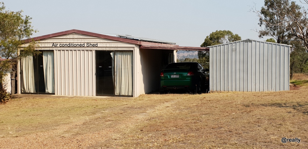 -Shed – 9m x6m with air con, double sliding front doors and power; Current termite barrier