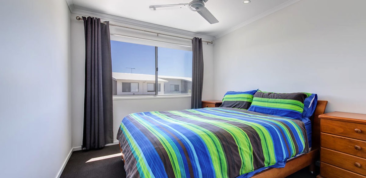 – Bedroom 2 with built-in wardrobe and ceiling fan
