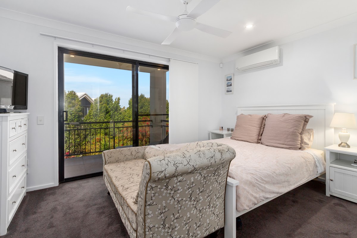The master bedroom features it’s very own en-suite highlighted by stone bench top, large “walk in” shower, and floor to ceiling tiles and a balcony over looking the private fully fenced back yard and air conditioning to Generous additional bedrooms both with built in robes and ceiling fans and fabulously renovated main bathroom complete with bath, stone bench top and floor to ceiling tiles.