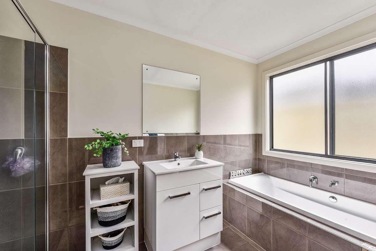 The bathroom is stunning with classy tiles and fittings and a separate toilet. The laundry has plenty of bench and cupboard space.