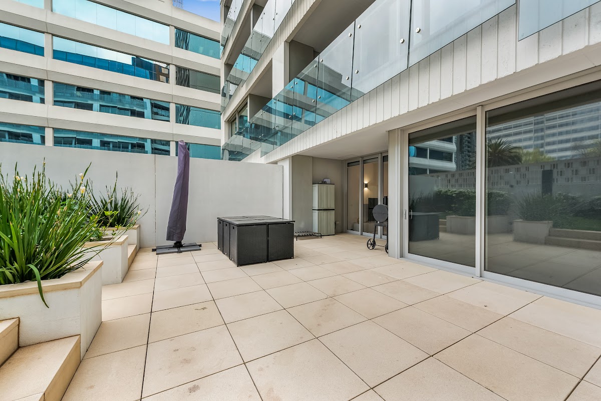 Affording effortless indoor-outdoor harmony, sliding doors open onto a refined entertainer’s courtyard and attractive, low-maintenance surrounds where summertime BBQs can be enjoyed with friends and family, while a rear gate offers convenient pathway access to St Kilda Road’s premier lifestyle attractions.