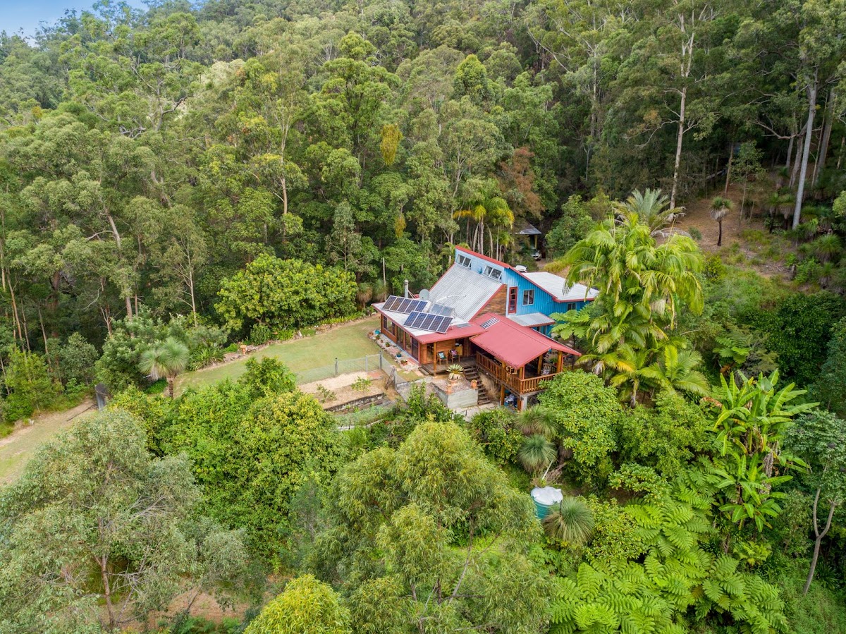Perched high on the range behind Uki Village sits this rural land share on Gumboot Community.