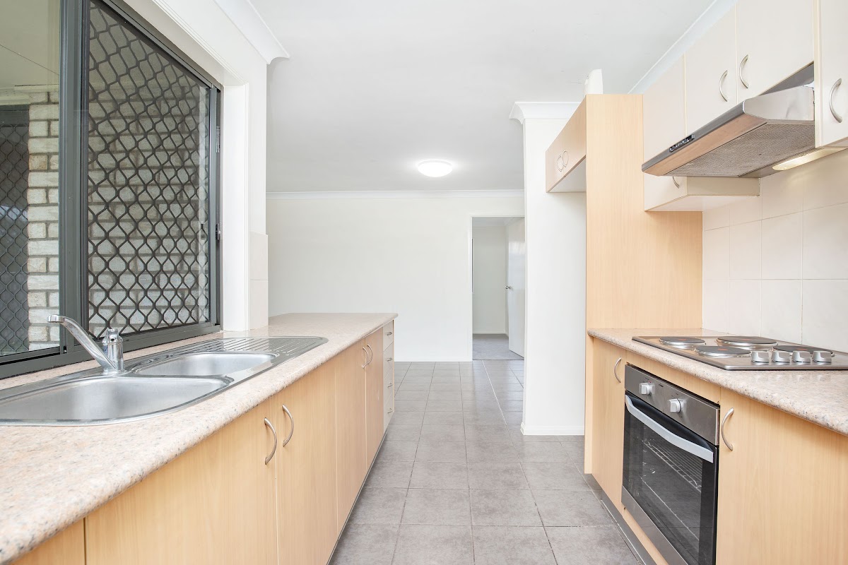 Galley style kitchen with loads of natural light and perfectly positioned to watch the kids in the fully enclosed and secure yard.