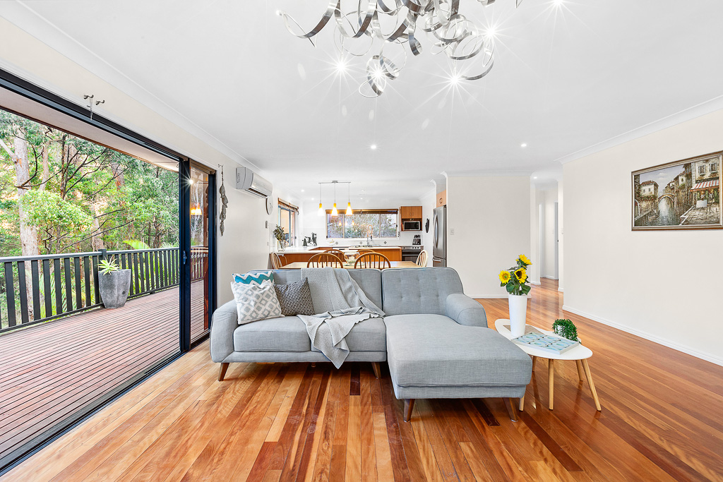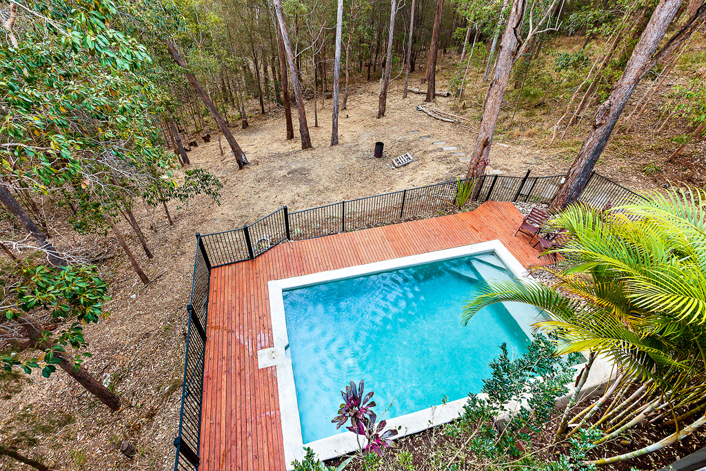 Privately nestled in beautiful leafy surrounds adjacent to nature reserve on 1740sqm2 from prestigious Hyland Green Estate. Enter the home through double doors to open plan living, with polished timber floors spread across two levels, multiple spaces and dual living potential. Watch epic sunsets overlooking the tropical pool and befriend local wildlife in a tranquil, peaceful setting only a few kilometres drive from world-class beaches, shopping and schools.