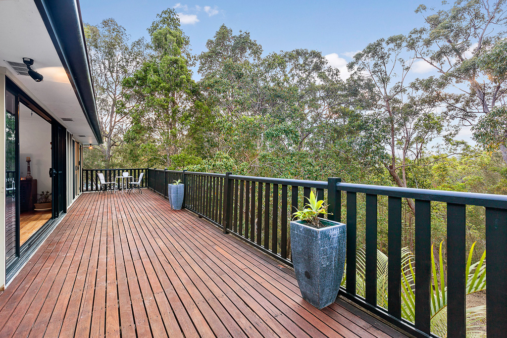 Solid hardwood timber decking embraces private bush outlook