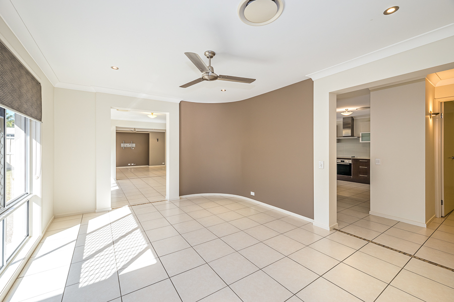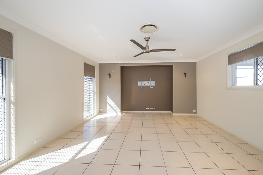 The home has four bedrooms, open plan living/kitchen/dining, media room, children’s playroom/study, office or additional living area, two bathrooms and double garage. There is also side access for a boat and trailer. Three of the bedrooms in this home are located towards the front of the home leading off the children’s playroom/study. The master bedroom features double sinks with Caesar stone bench tops, double shower and large walk-in robe. There are sliding doors leading to the outdoor entertainment area.