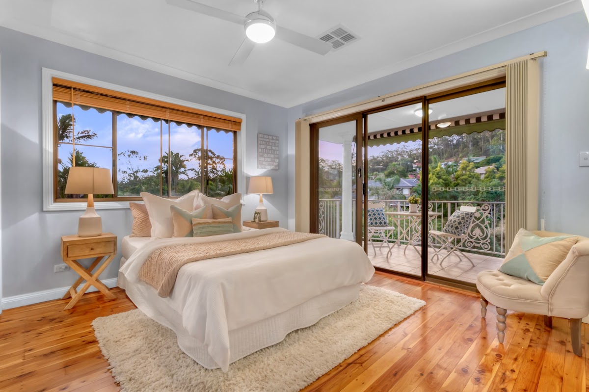 Stunning polished timber floors feature throughout the upper level where you can enjoy the open plan design and cool mountain breezes.
