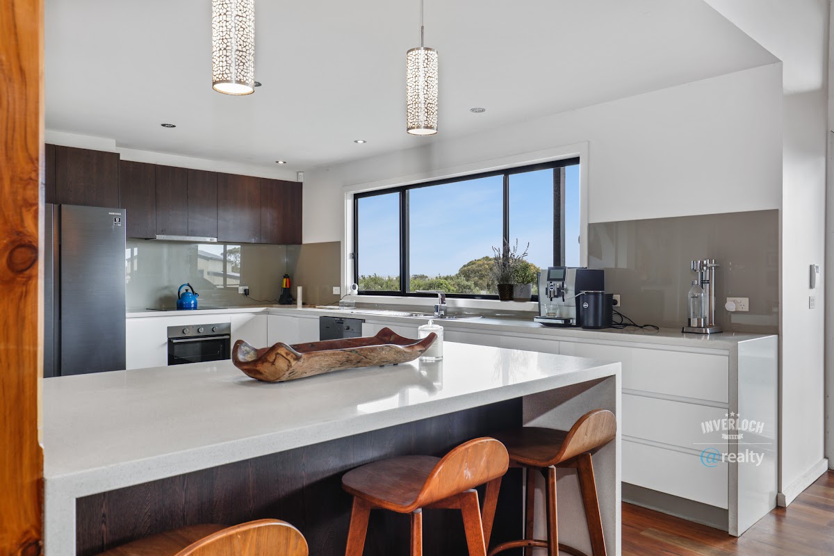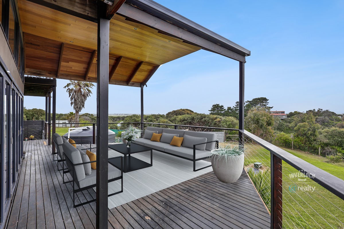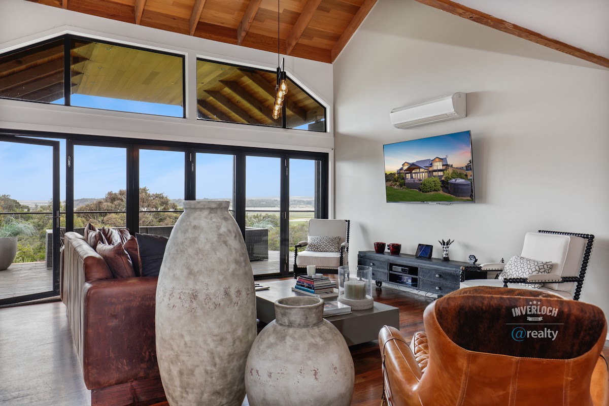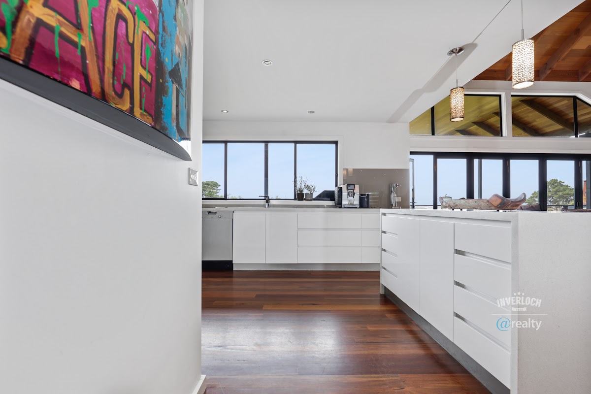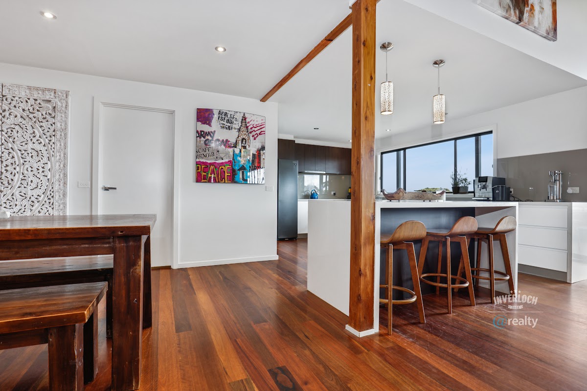 Located in an elevated position in Venus Bay with its stunning beaches and traditional beach town vibe, this large family home has a lot to offer the astute buyer. Designed to capitalise on those views, the large open plan living and dining area leads out onto a huge entertainers deck, as do two of the large master bedrooms on the second floor where you can enjoy a glass of wine from your own private balcony and take in the forever views.