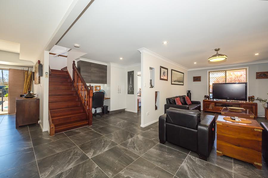 The ground floor of this home has recently been renovated with a large high quality kitchen boasting a large island bench with granite bench tops and beautiful floor tiles. There is no lack of storage space here, with the added luxury of a walk in pantry. The home is open plan with the kitchen/dining/living, study nook and three bedrooms, one with en-suite plus another separate family bathroom, located on the ground floor. The master suite with its walk in wardrobe and en-suite and a huge second living area or parents retreat is located on the top floor with magnificent views of the water and the glass house mountains.