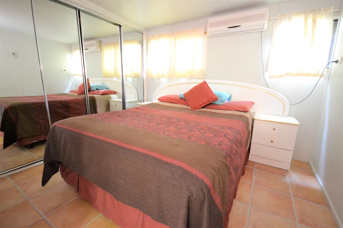 This home is in a great spot, towards the back of the park, right away from tourists!! There is a nice entertainment area at the front of the home, a separate dining area and huge kitchen, large main bedroom with air conditioning & built-ins, 2nd bedroom with built-ins, a good sized bathroom and a utility room or workshop at the end of the carport.