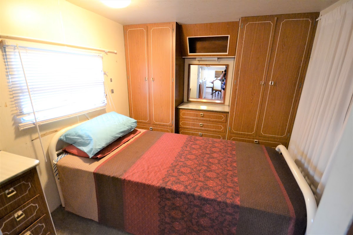 This home is in a great spot, towards the back of the park, right away from tourists!! There is a nice entertainment area at the front of the home, a separate dining area and huge kitchen, large main bedroom with air conditioning & built-ins, 2nd bedroom with built-ins, a good sized bathroom and a utility room or workshop at the end of the carport.