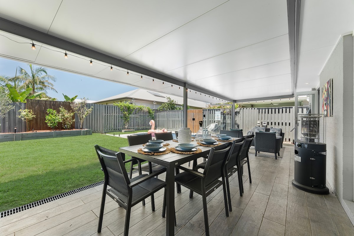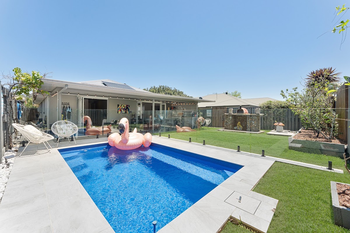 The open plan living and dining areas flow seamlessly to the covered alfresco, overlooking the brand-new saltwater pool and private backyard. Entertain effortlessly with a custom-built pizza oven complete with prep benches on either side, creating the perfect setting for gatherings with family and friends.