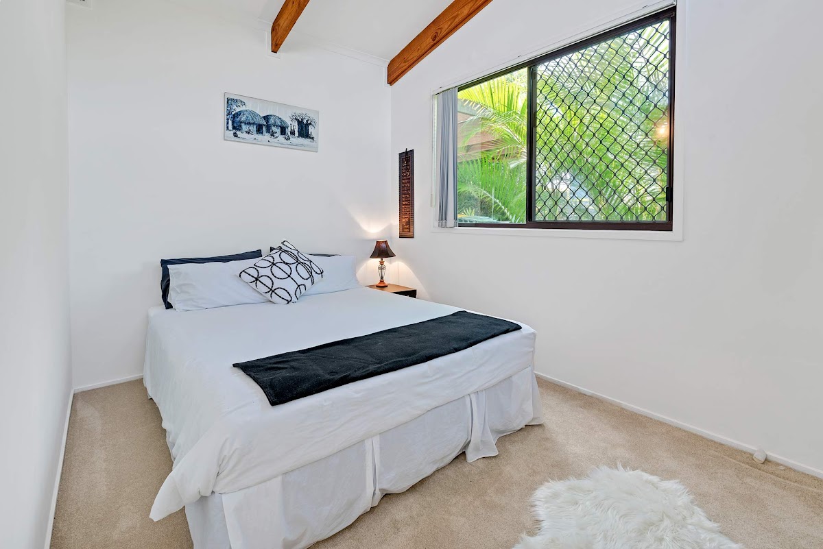 Light, bright and freshly painted with modern bathrooms this home is move in ready. It offers 3 bedrooms (with an optional 4th room) all with built-ins, the master with an en-suite and air cond. The main living area, with a wood burner, air cond and a ceiling fan, opens out to one of three decks which overlooks the inground saltwater pool and tropical gardens that boast a spacious and useable lawned area – perfect to kick a footy or run the dog.