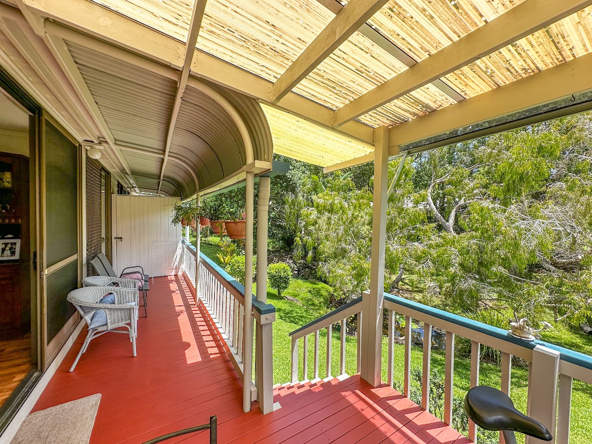 – Terrific full-length back deck overlooking picturesque landscaped gardens and creek.