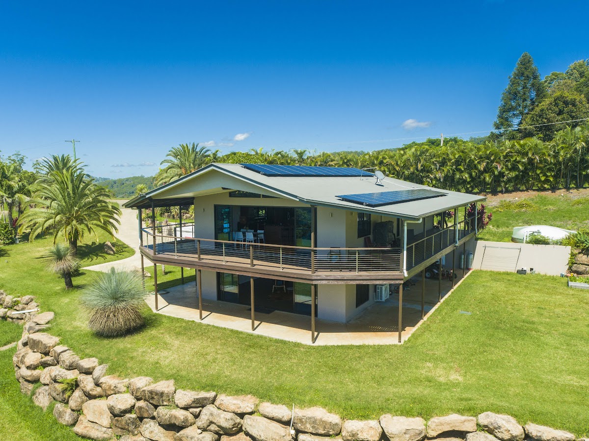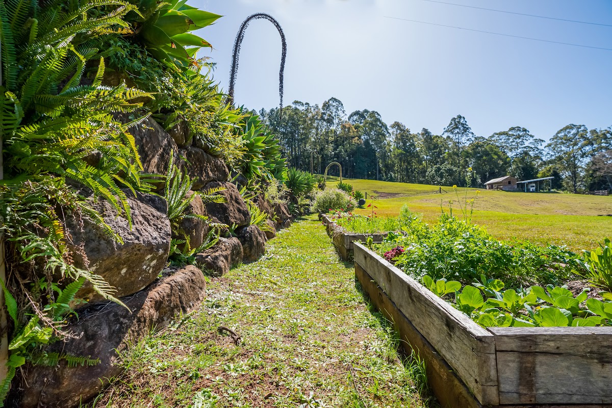 The house provides many sustainable living factors from its 8.5Kw solar system & 13.5Kw Tesla battery, installed locally by Rainbow Power to six raised vegetable gardens, citrus trees, 99 lemon myrtle trees another vacant 20 planter boxes + beautiful grazing pastures to offer farm grown meats.