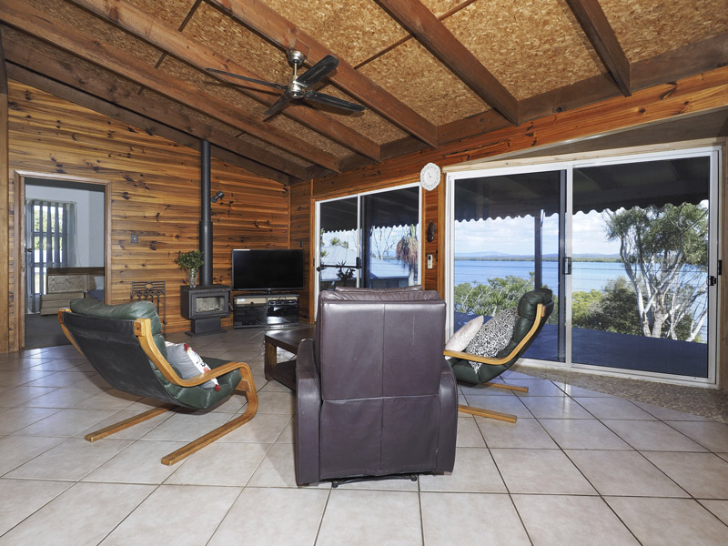 This lovely 3 bedroom cottage is oriented to take in the spectacular water views from most of the living spaces. With high raked ceilings in the lounge and kitchen, providing a nice airy feel and opening out to the full length back deck – complete with screened in alfresco dining area!