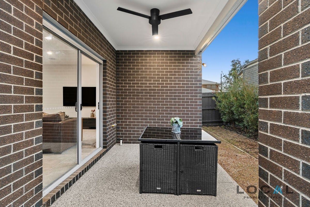 Step outside to a low-maintenance backyard and a covered alfresco area with a ceiling fan, complete with gas and water connections ready for your outdoor sink and BBQ – ideal for outdoor cooking and entertaining all year round.