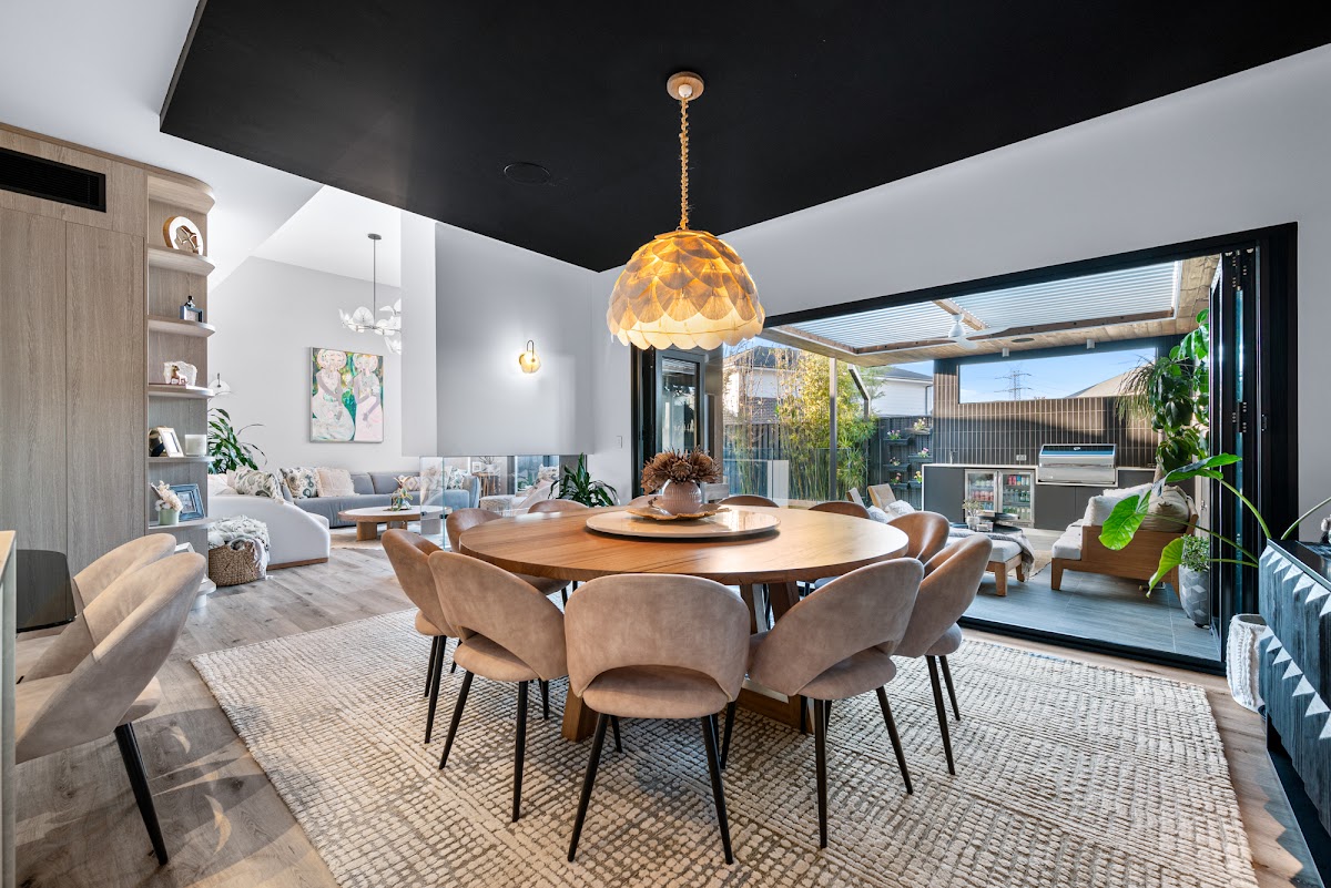 – Dining room features a designer ceiling, speaker system built into ceiling, Bi-fold doors opening up to reveal a spectacular indoor/outdoor living arrangement