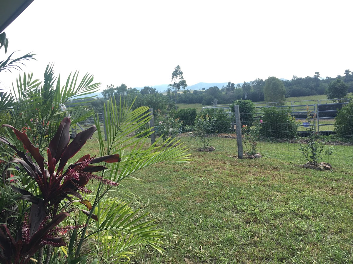 Fantastic outdoor living area surrounded by tropical and native gardens , a very private location in a prestige area just outside of Kilcoy township