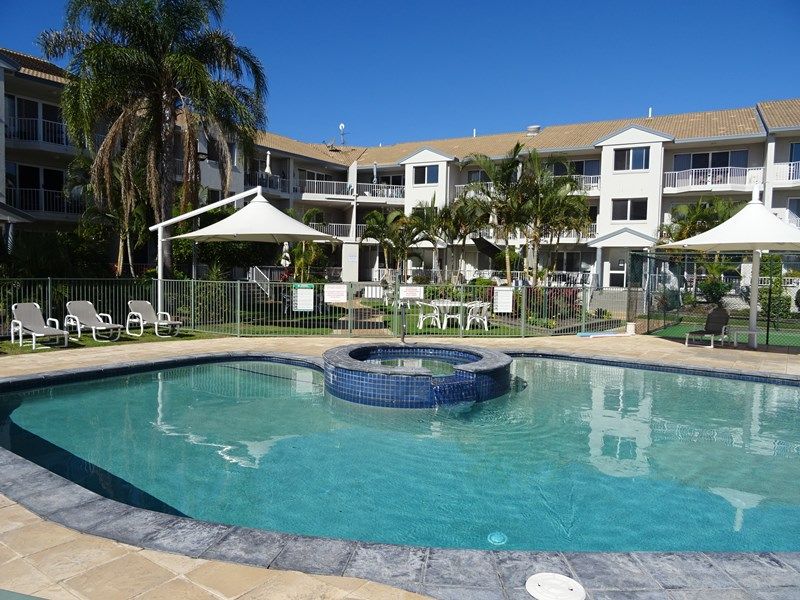 This tidy 2 bedroom ground floor unit is one of only 65 in the fabulous waterfront Pelican Cove Resort which boasts two salt water pools (one is heated), half tennis court, pontoon and boat ramp, barbecues and entertainment areas all set amidst well maintained, lush gardens.