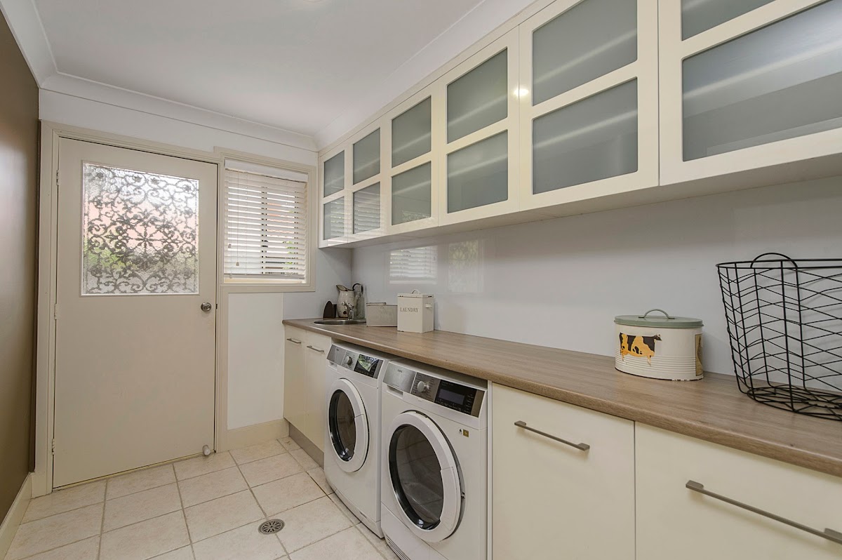 • Superbly appointed kitchen with lots of bench space, AEG induction cook top, self cleaning Pyrolytic Westinghouse oven, AEG XL Dishwasher, lots of pantry storage and an easy breakfast bench that will attract family and guests for casual meals.