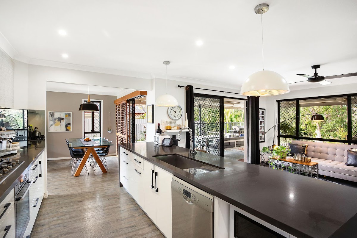 Jackpot!! You are the Winner! Properties of this quality and style do not come along very often! Tastefully and stylishly presented, meticulously renovated with class and love, this home oozes comfort and space and is ideal to just move in and enjoy the ultimate Gold Coast Lifestyle. This ideal low set, secure, low maintenance bright, breezy and spacious home boasts 2 separate living areas, 4 bedrooms, a brand new and stylish 2 way bathroom + a powder room, double lock up garage and a very big separate laundry! The layout is ideal, the “flow” caters for easy living and entertaining with stunning timber look easy maintenance and hard wearing vinyl flooring. The gourmet kitchen designed and ideally planned by the chef owner, is the beating heart and hub of this stunning home. Cook, eat, chat at the huge caesarstone waterfall edge island bench and seating area. Entertain in class, privacy and ease under the large deck alfresco area overlooking the brand new sparkling pool and a large tropical open space at the back of the block. Private, secure and spacious… a unique opportunity here to be the proud owner of this immaculately presented home. The new owner will capitalise… make an offer, this one will not last. Just move in with absolutely nothing to do.