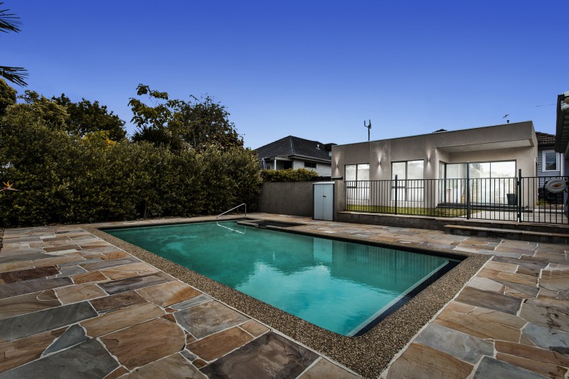Enter the home to stunning wooden floorboards and discover a fully renovated home with generous bedrooms, central family bathroom incorporating a shower and separate bath, master bedroom with separate ensuite and walk in robe. Step down onto a stunning concrete floor to the open plan family living area with an abundance of large windows providing plenty of light. You are instantly greeted with a generous kitchen with a sleek, caesar stone benchtop and glass splashback. The outdoor area is visible from here and invites you to slide open the door to a safe play pad for the children, or perhaps enjoy the private outdoor alfresco entertaining area or the fantastic family outdoor pool.