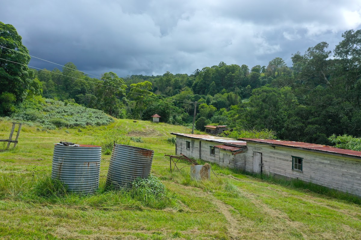 The home is positioned high on the hill which looks over the majority of the property and the three sheds (open colourbond shed approx 56sqm, old milking shed approx 150 sqm, old bales 120sqm also connected to mains power). The bales and milking shed are in need of some TLC though they both have strong hardwood frames and both boast huge fig trees nearby. There is some weeds and shrubby bush across the property, but nothing a good tractor cannot handle.
