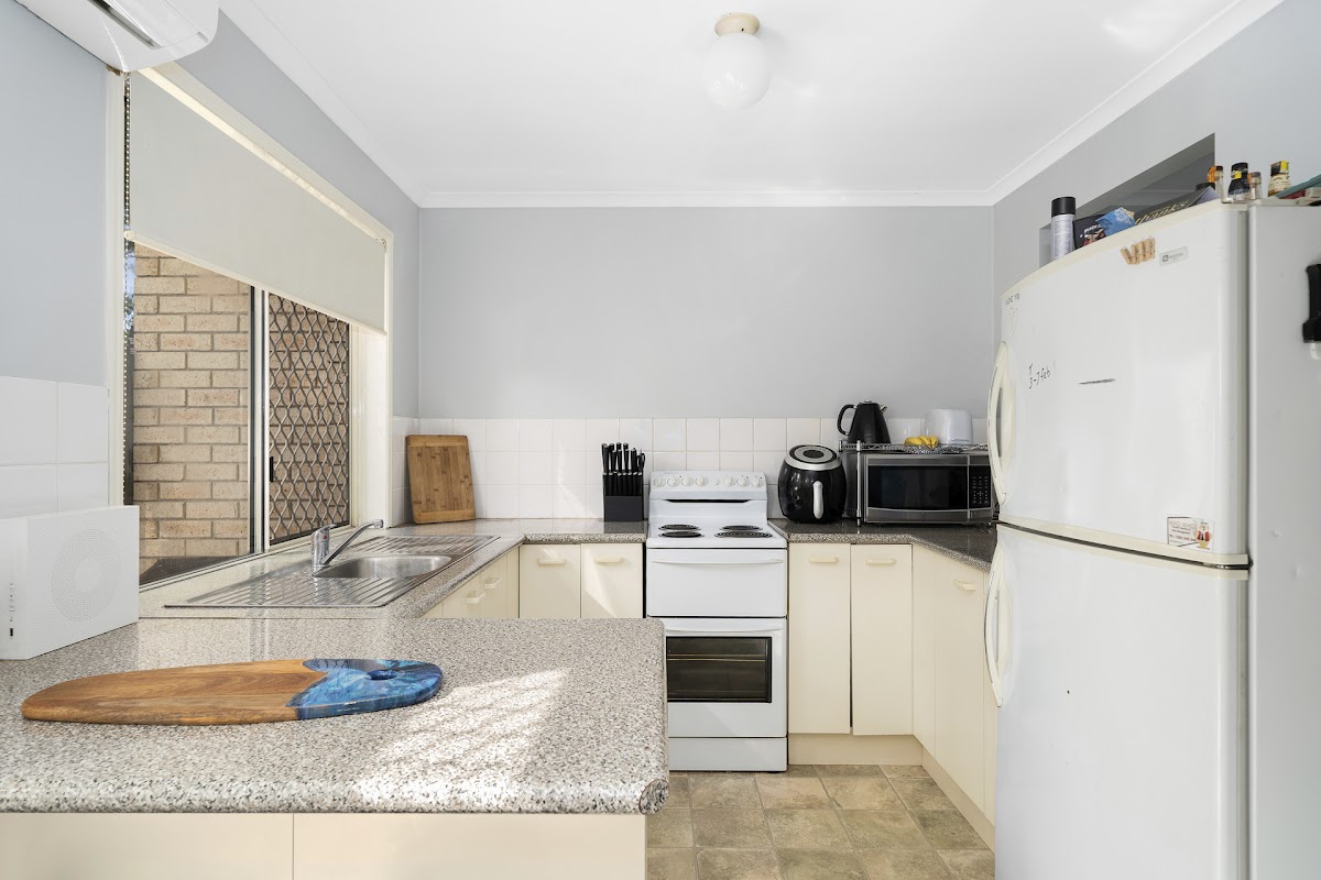 A generous sized kitchen decorated in neutral tones, providing ample storage and bench space, plus an air conditioner there is a separate laundry and additional toilet downstairs for your convenience. A private courtyard at the rear allows for your own outdoor space, with a green space behind to keep you cool.