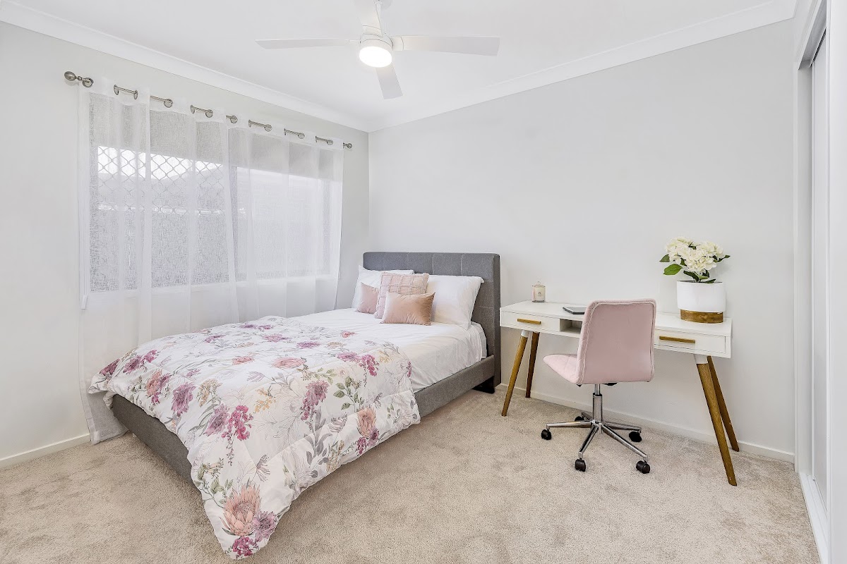 The master suite boasts a private ensuite with a walk-in robe. Two additional queen bedrooms are serviced by a crisp bathroom featuring a generous-sized shower and a relaxing bath to soak in.