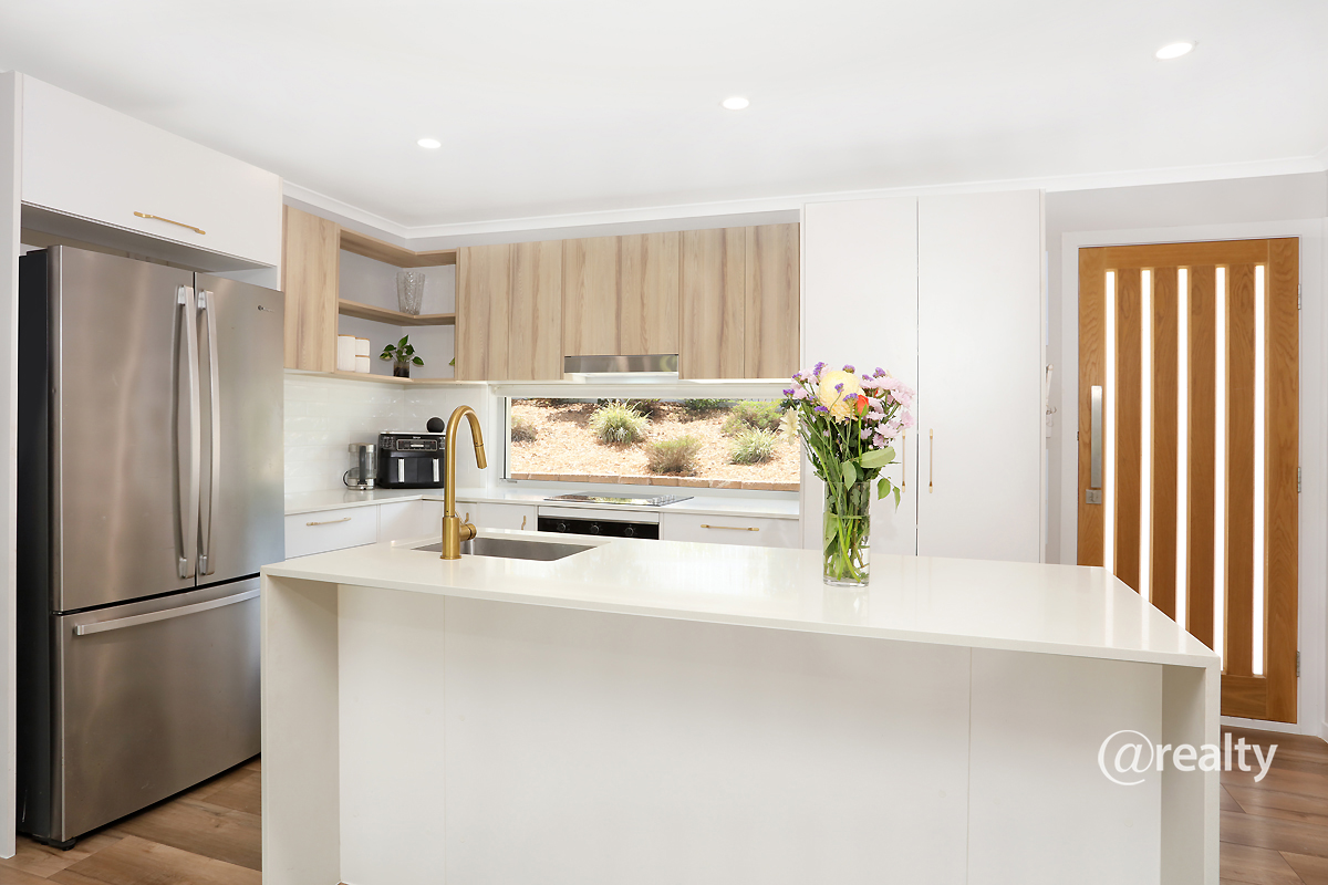 Step into this beautifully renovated home, where crisp white and soft grey tones create a modern, inviting atmosphere both inside and out. The contemporary kitchen boasts sleek white stone benchtops and high-quality appliances, perfect for those who love to entertain. The generous open-plan layout flows effortlessly to a spacious deck—ideal for hosting family gatherings, Christmas lunches, or casual get-togethers with friends while enjoying a scenic outlook.