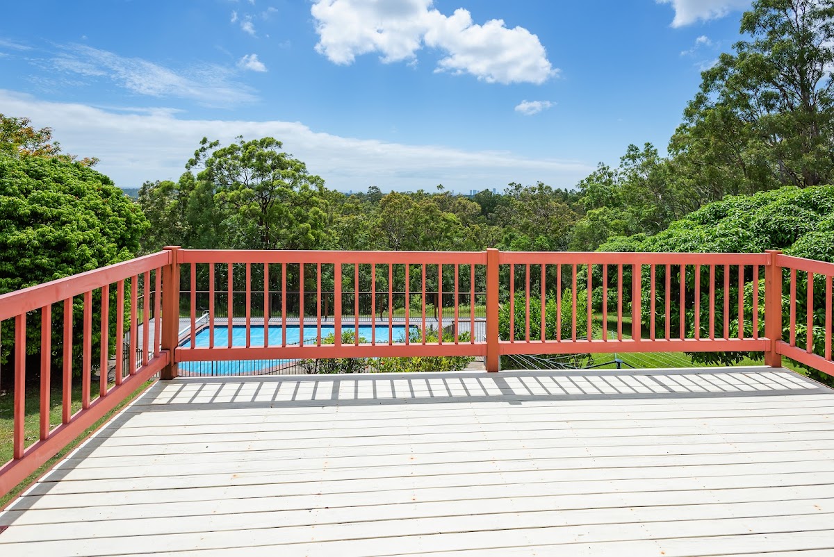 Upstairs, the home comprises four well-proportioned bedrooms, two bathrooms, separate living and family areas, and a kitchen that enjoys sweeping views toward Surfers Paradise and the ocean. Verandahs on both sides of the upper level provide inviting outdoor spaces throughout the day—perfect for morning shade on the eastern side with ocean views, and sunset enjoyment from the western side.