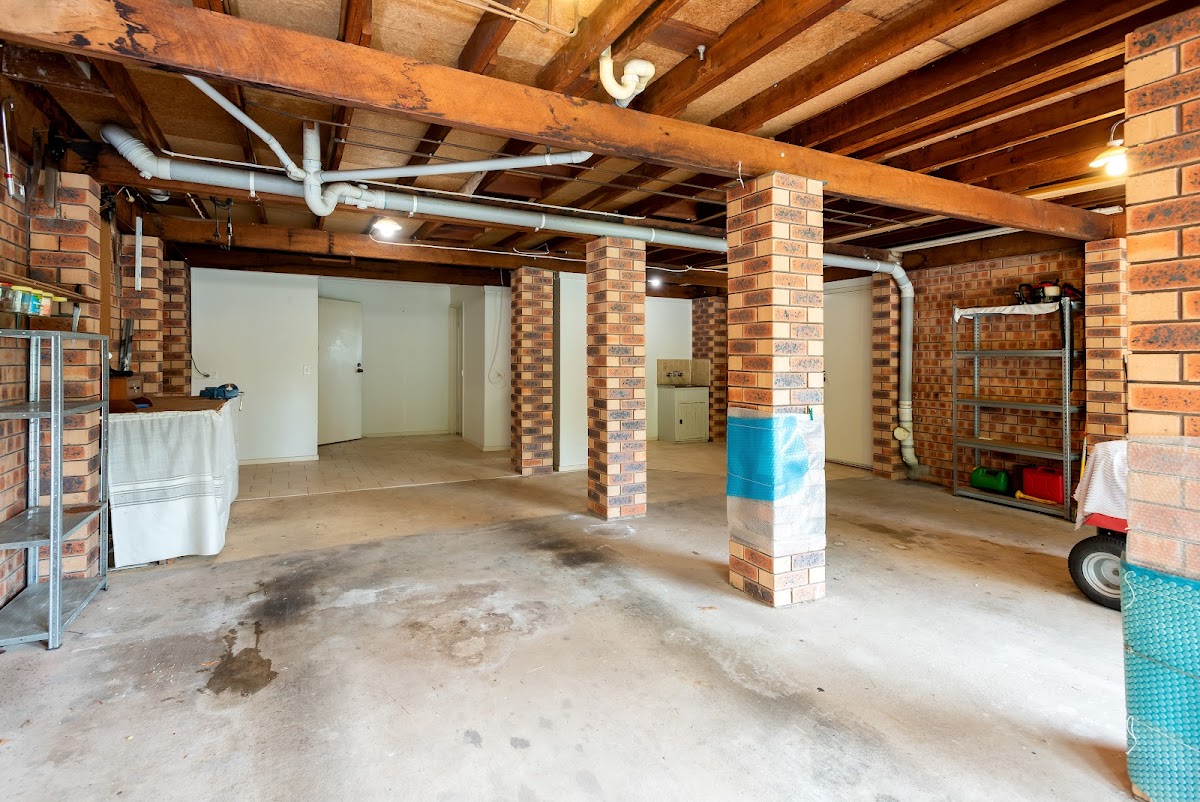 The two-story design provides excellent functionality. The lower level features extra-deep garage accommodation, a laundry, and a convenient third bathroom—ideal for use after enjoying the yard or pool. Additional under-house storage is accessed separately, offering generous space for storage.