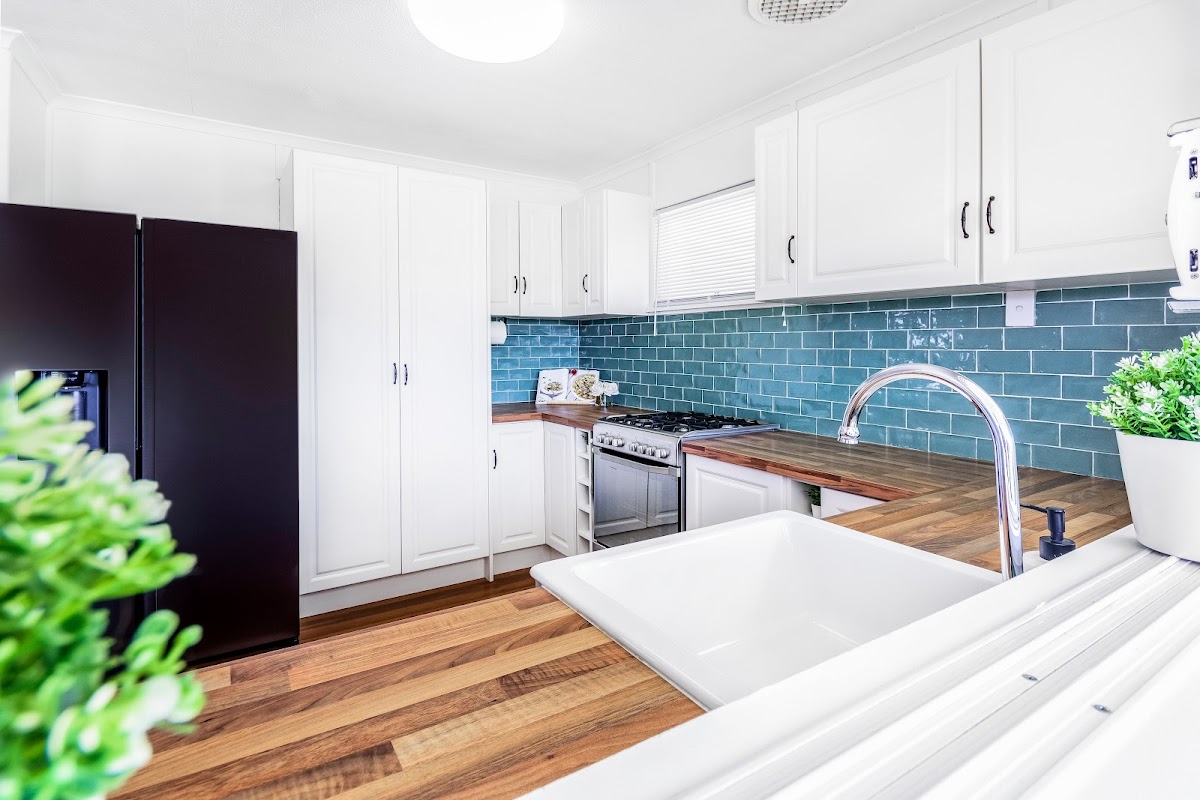 -Timber Countertops, Farmhouse style sink and Entertainers cooking