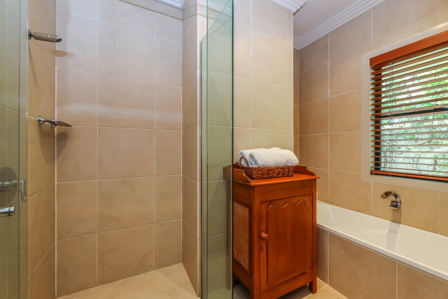 • A large salt water swimming pool is situated in a private location and is accessible from the living area, office and master suite. A bathroom complete with shower, toilet and basin is positioned beside the pool access door for people wet from the pool.