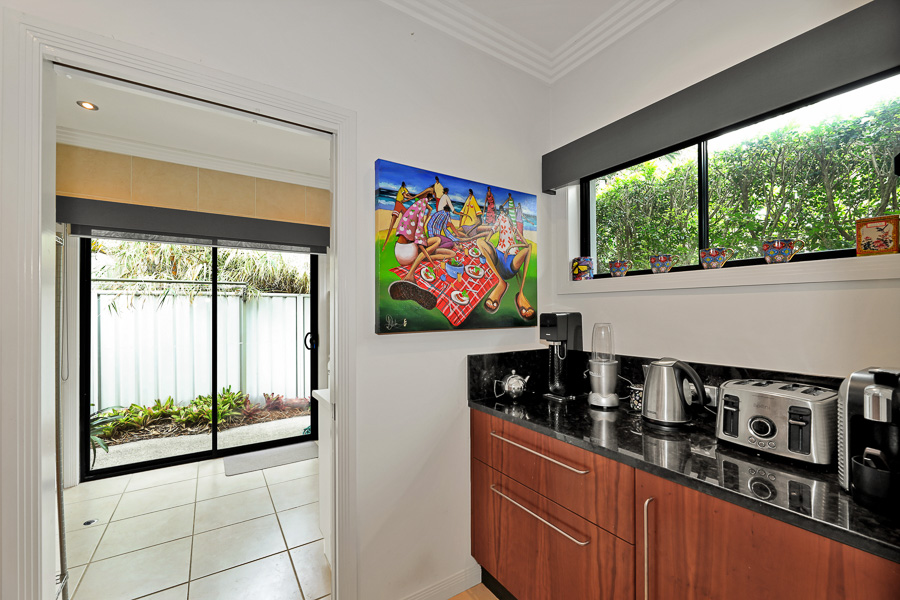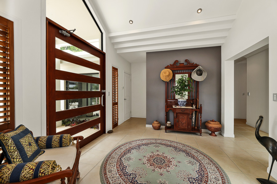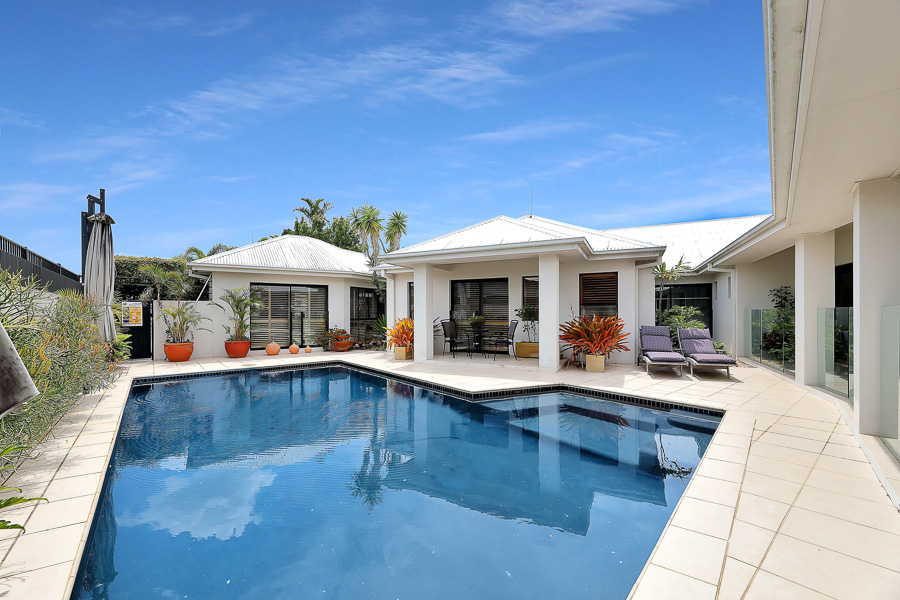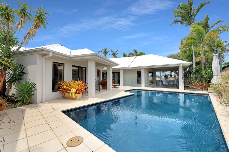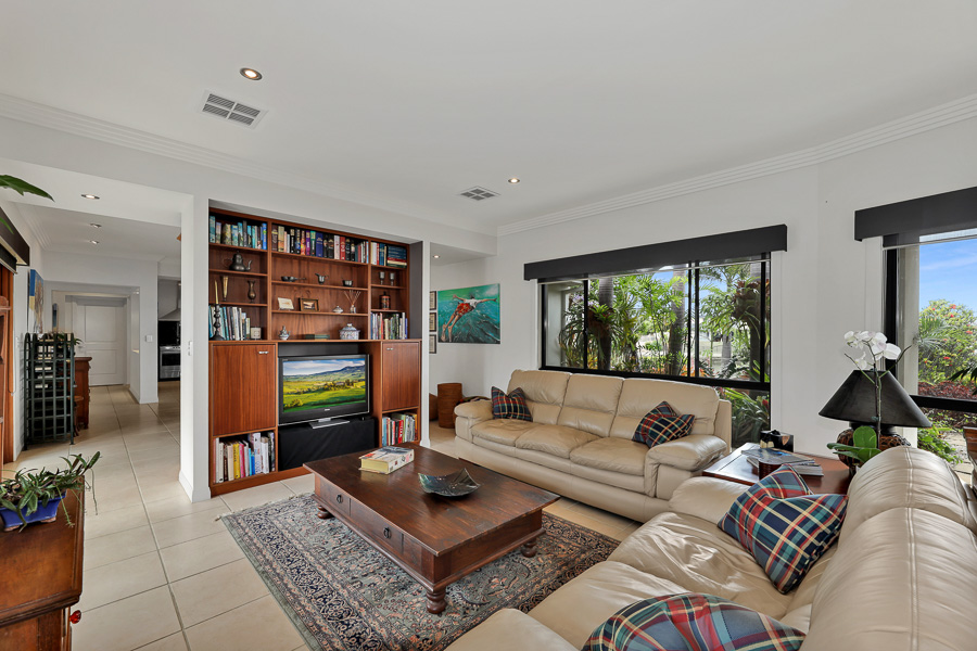 You couldn’t find a higher quality-built home offering a wonderful easily maintained, quiet, private, resort style sanctuary for someone who wants all the amenities close by but privacy as well. Designed by architect Phil Quayle and built in 2001 by Peter Clayton Homes on a large 1330 sqm block, it has been designed to catch the cooling sea breezes no matter which direction the wind is coming from. This wheel-chair friendly 483.7 sqm home features four bedrooms, office, media room, open plan living/dining/kitchen, 4 bathrooms and double garage with workshop space. Don’t worry about space for the toys, lots of parking space here.