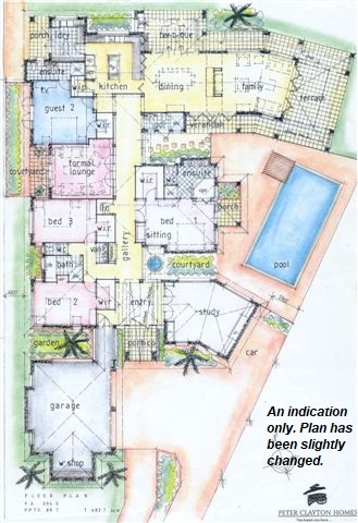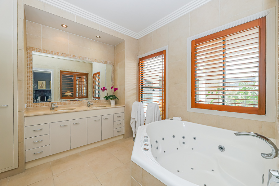 • The master suite features a walk-in robe, double basin en-suite, deluxe spa bath and has access to the swimming pool and covered under-roof patio. All the other bedrooms are queen size with walk-in robes, two sharing a bathroom with double basin vanity and the other complete with en-suite. A guest room has been designed to accommodate a living area and en-suite bathroom. An ideal space for extended family.