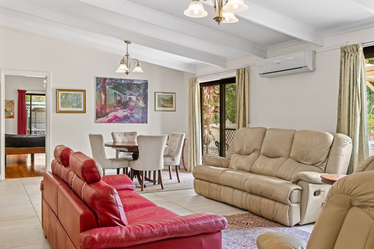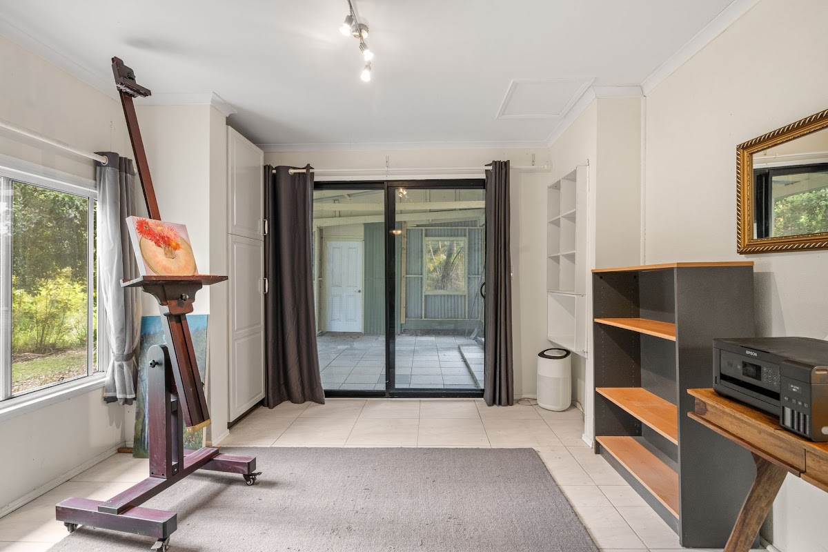 The residence also features an air-conditioned main bedroom overlooking the pool, plus a second air-conditioned bedroom with attached artist’s studio and verandah both include IKEA built-in storage. The tiled bathroom includes a shower, separate bath, WCand Bidet, supported by a new electric hot water system.