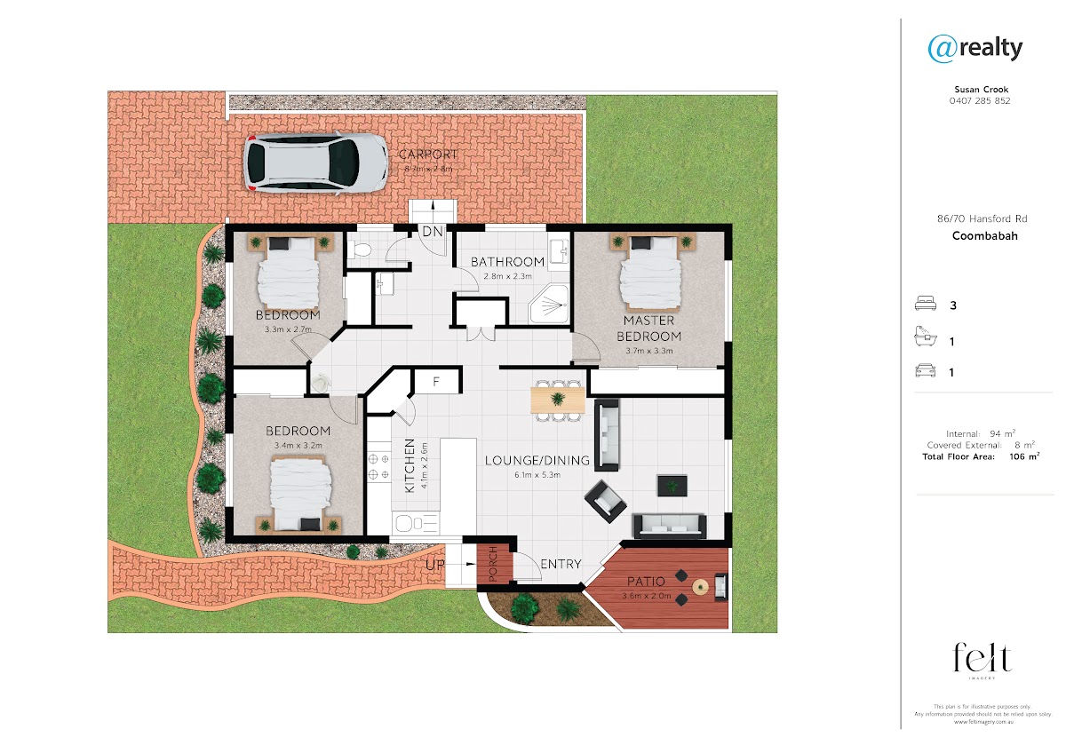There are 3 generous size bedrooms and all rooms have built in wardrobes, 1 bathroom and a separate toilet and a separate laundry. The bedrooms and lounge have new carpet, and there are 2 air conditioning units, 2 ceiling fans and an open plan living room with a spacious kitchen, inclusive of a mobile dishwasher.