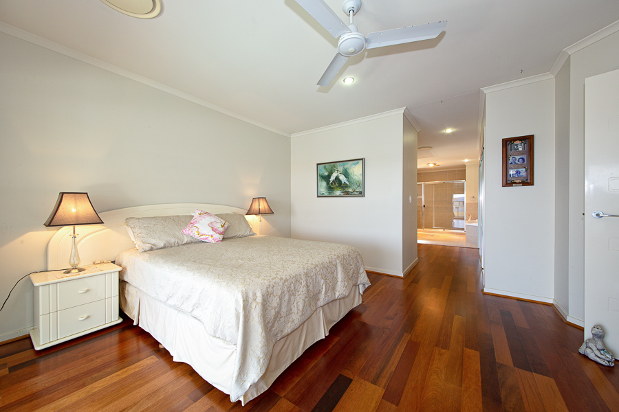 The large main bedroom is located upstairs boasting an enormous en-suite bathroom with spa bath, large double shower and a veranda overlooking the water. A great place to relax at the end of the day. There are two other queen size bedrooms located on this level with another queen size guest bedroom located on the ground floor.
