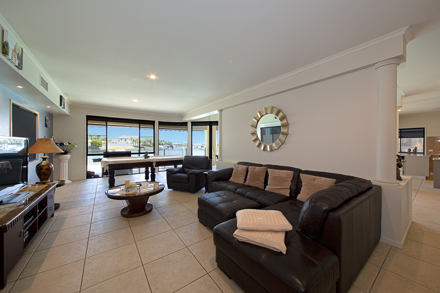 This is a spectacular two storey South facing waterfront home built on a large 1041 sqm block and located in one of the most sought after canal locations on the island with stunning wide water views and quick access by boat to the Pumicestone Passage. One of the great aspects of this property is the wide side access allowing for a caravan or boat and trailer to be stored securely behind gates.