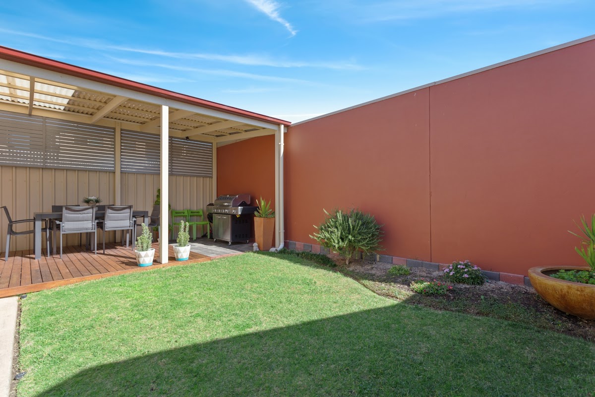The back yard is pretty as a picture with low maintenance garden, lawn area and an undercover outdoor area – creating a seamless flow of indoor and outdoor living and entertaining.