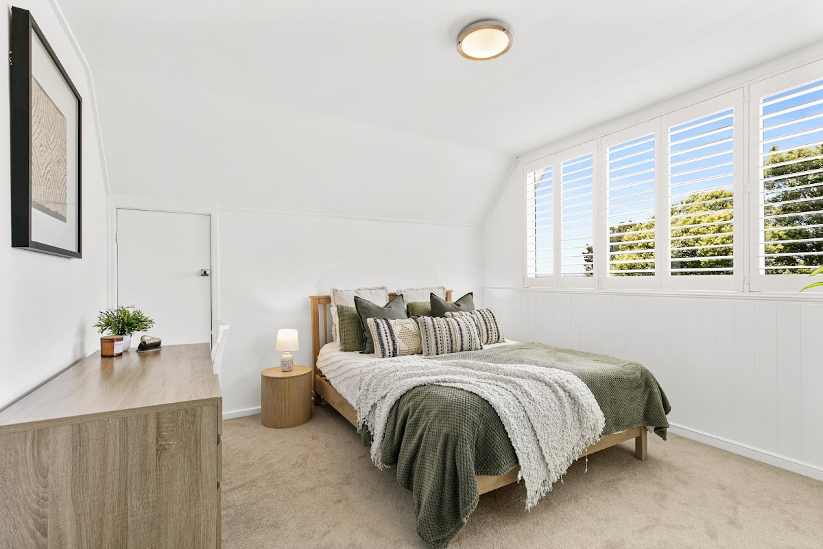 The 4 bedroom house highlights classic Hamptons character with engineered French oak floors throughout the living areas, solar panels, new carpets in all upstairs bedrooms, and underfloor heating in both the main bathroom and main bedroom. Comfort is ensured year round with ducted air-conditioning, and a remote drop-down projector screen adding a premium cinematic touch to the living room.