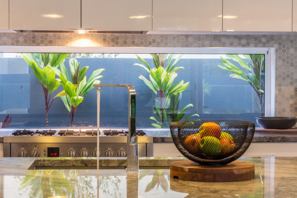 • Large designer kitchen with gas cooking, expansive 30mm granite counter tops, large island bench with waterfall edging and European appliances