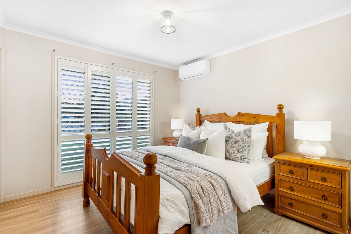 • Master bedroom fitted with plantation shutters, air conditioning and ensuite